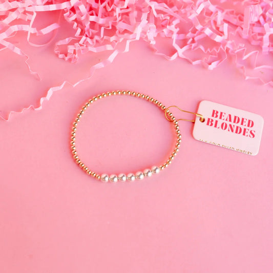 Beaded Blondes Silver Gold Dainty Bar Bracelet